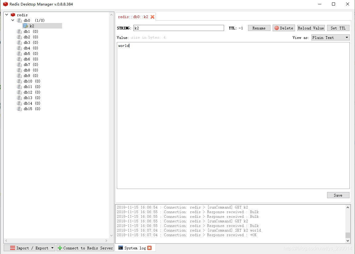 我这里的连接环境是redis数据库安装在腾讯云服务器上,使用Redis Desktop Manager软件来连接